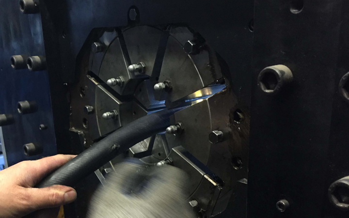 More and more, industry demands an engineered coupling system for industrial hose clampless assemblies. IRP can crimp up to 6"ID on our Finn Power FP160VS. This process offers 360 degree uniformed seal, better coupling retention at higher pressure and no protruding metal clamps which may cause injuries. Should your customers require an external or internally swaged hose IRP offers internal expansion up to 4" and external up to 6" on our Dixon Holdall Ram.